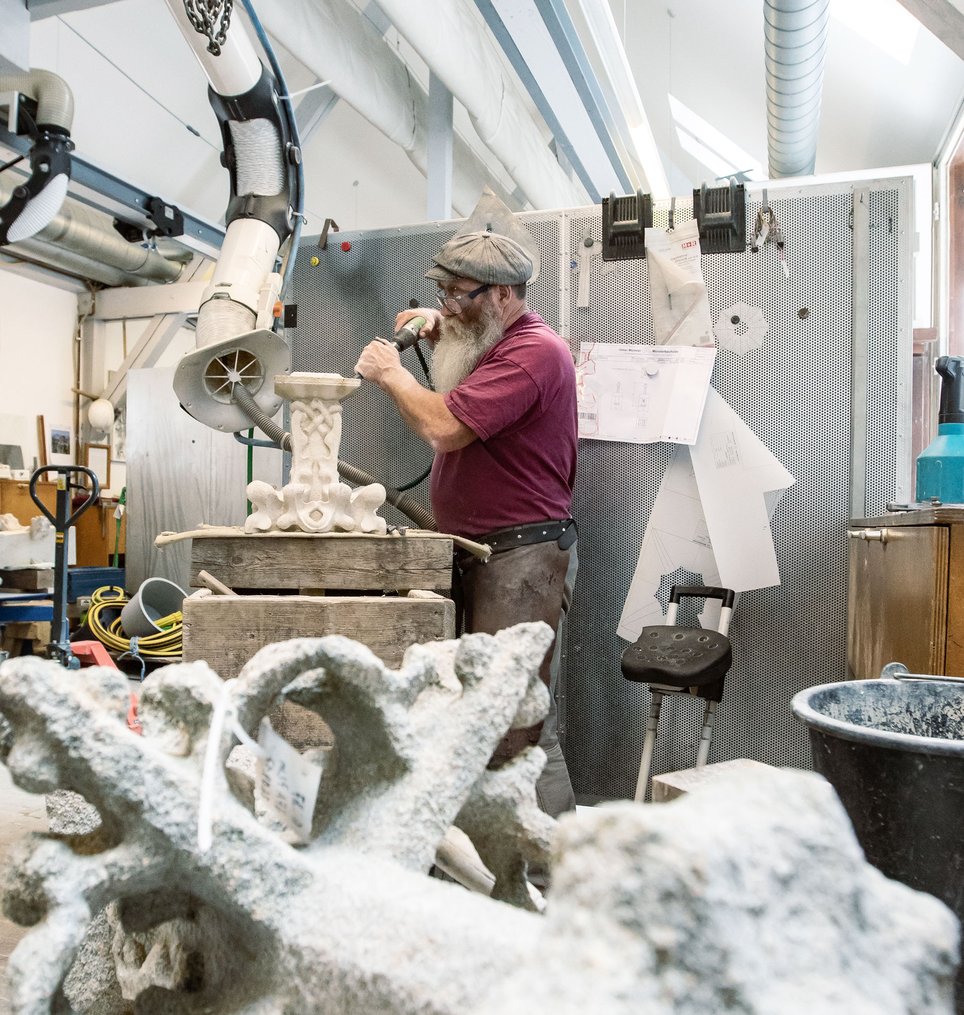 Since the Middle Ages, construction workshops have been set up on the construction sites of cathedrals and major churches in Europe. Then and now, these workshops are situated directly alongside their respective church buildings and bring together people from a wide variety of trades who work closely on the building and preserve their knowledge by handing it down from generation to generation.